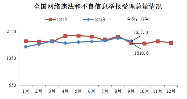 2025年9月全国受理网络违法和不良信息举报1857万件