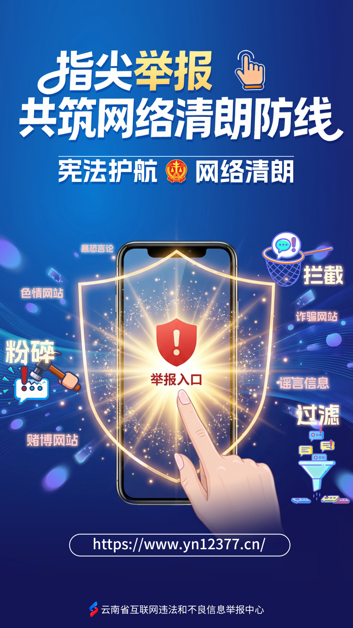 官网:https://www.yn12377.cn/,点击“举报入口”,按不同类别选择进行举报。