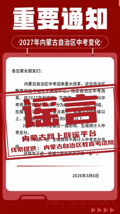 网传“内蒙古中考改革”不实信息,官方提醒:不信谣、不传谣