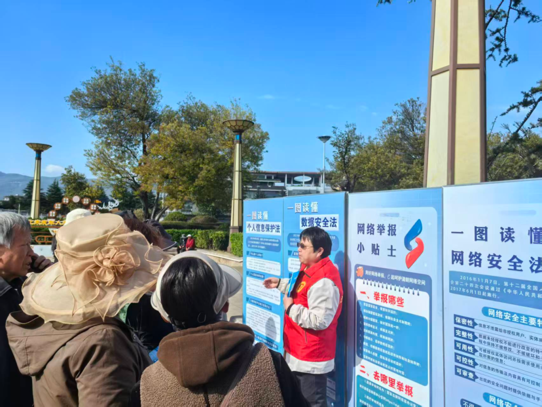 普法宣传环节聚焦精准发力,现场设置专属普法宣传区,向群众发放网络安全普法手册,详细解读《中华人民共和国网络安全法》《中华人民共和国个人信息保护法》等核心条款。工作人员结合近期典型网络诈骗、个人信息泄露、网络谣言等案例,用通俗易懂的语言拆解法律知识,分析违法后果,告知群众如何识别网络风险、规避安全陷阱,以及遭遇网络安全问题时的维权途径。同时开通互动咨询通道,耐心解答群众提出的各类网络安全相关疑问,切实将普法宣传落到实处,提升群众的法律素养和自我保护能力。